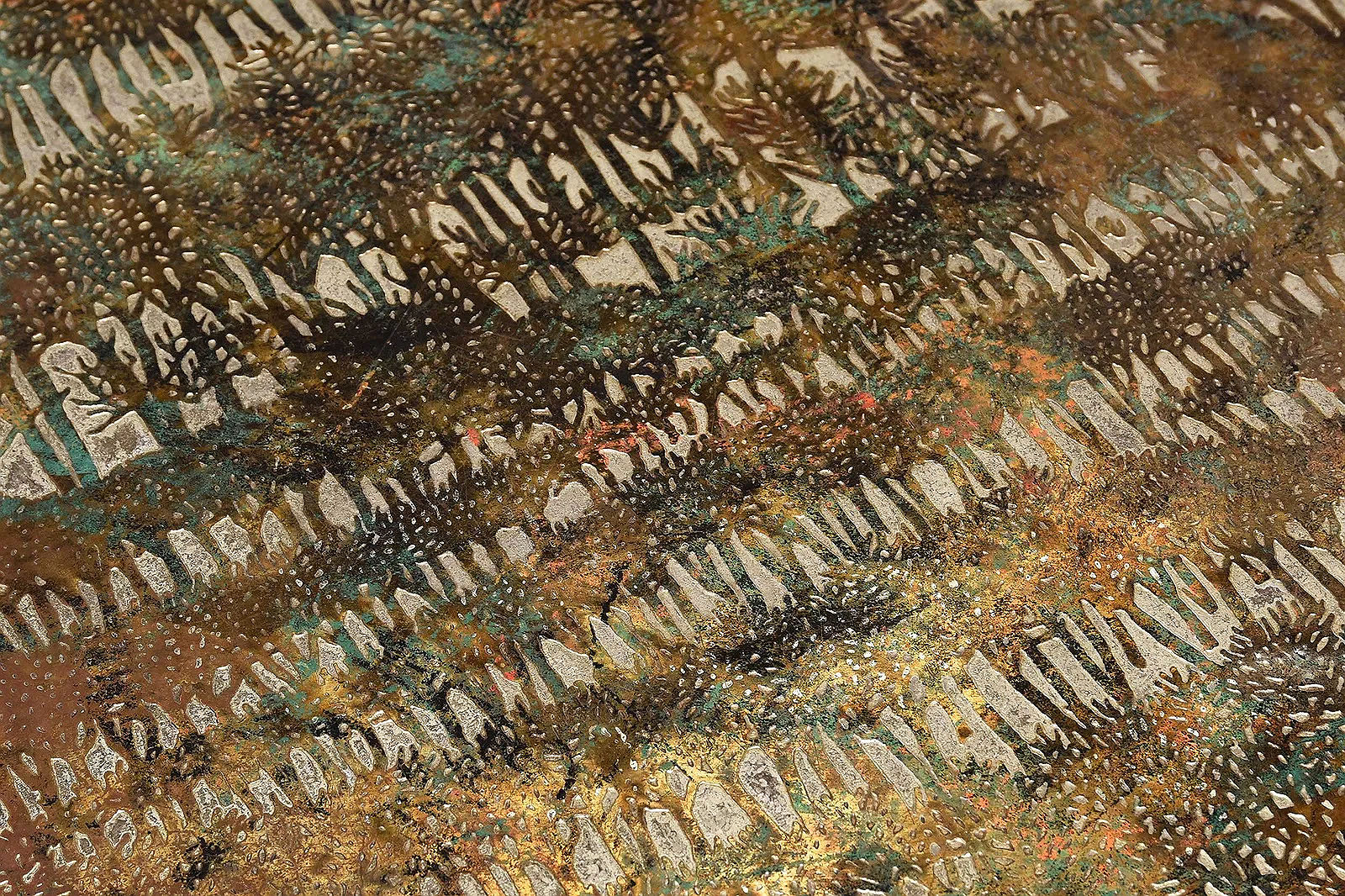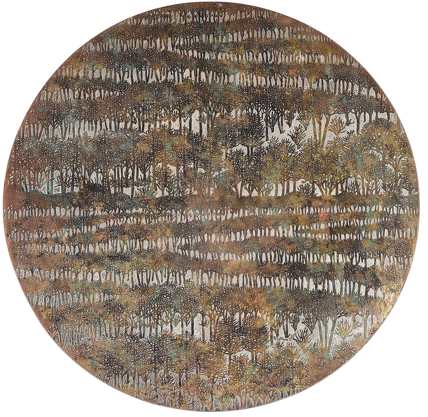 newRare engraved and acid-etched, patinated and polychromed bronze, pewter and enamel "Eternal Forest" Coffee table by Philip & Kelvin Laverne
