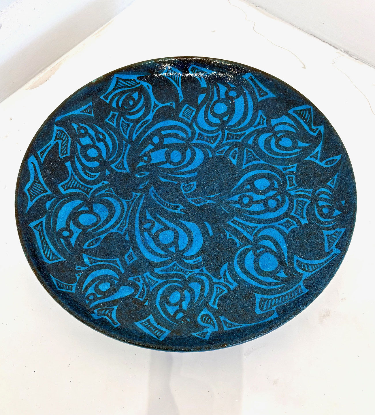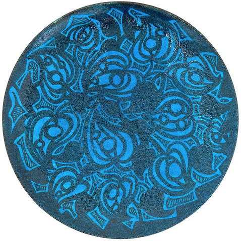 Persian Blue Wall Ceramique Plate by Edmond Lachenal. Signed: Monogrammed "EL piece unique". France:circa 1930