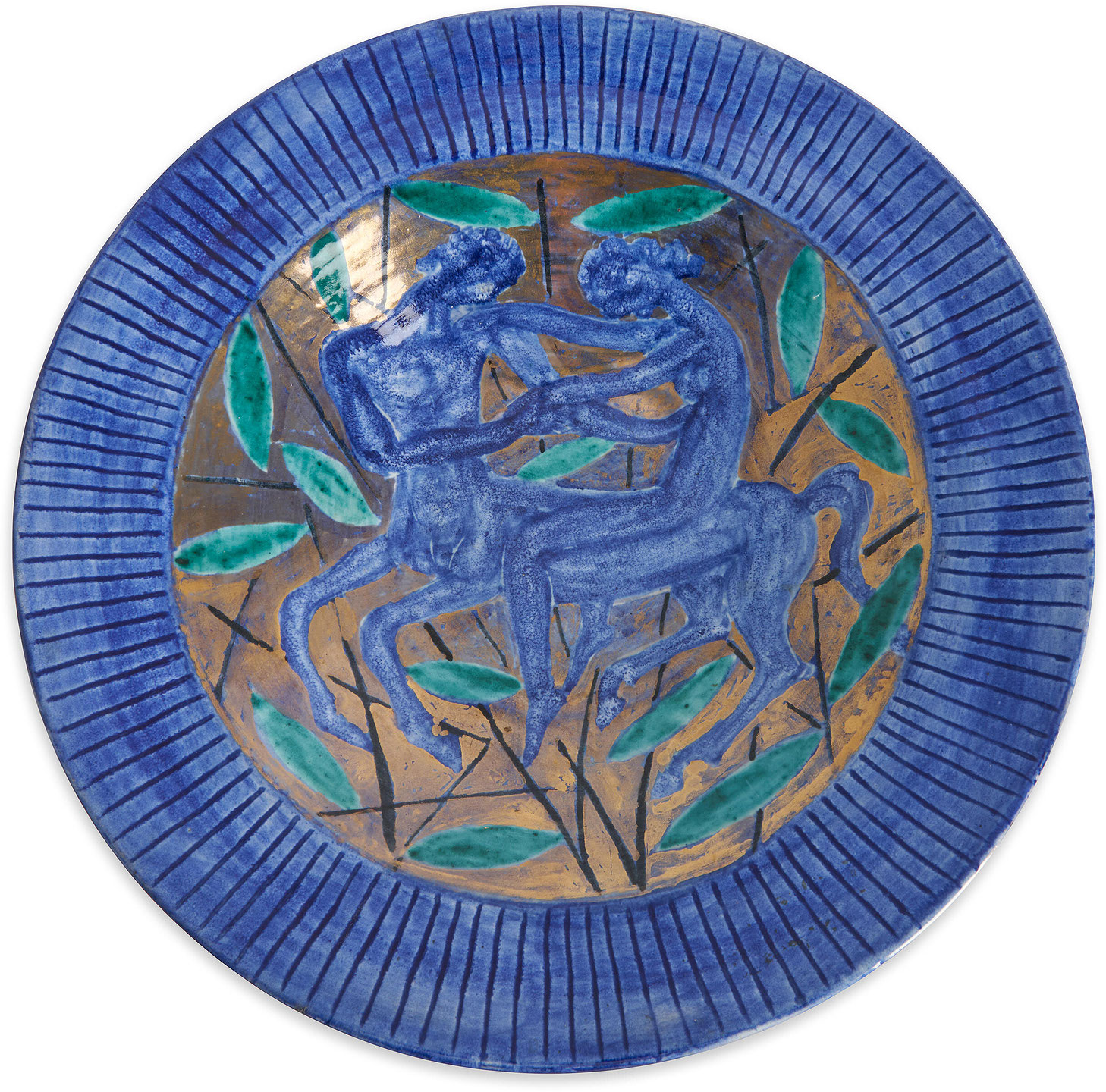 Blue glazed ceramic bowl by Édouard Cazaux incised signature: "Cazaux" France: circa 1930
