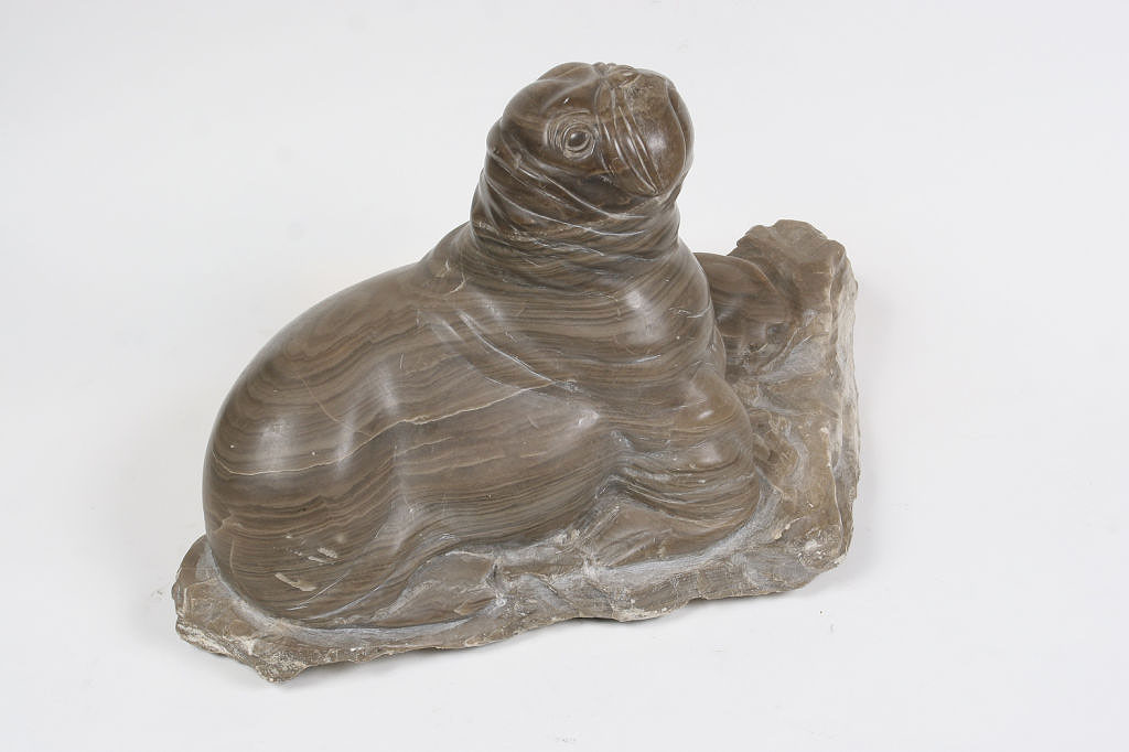 Large and unusual onyx sculpture of a walrus. American.