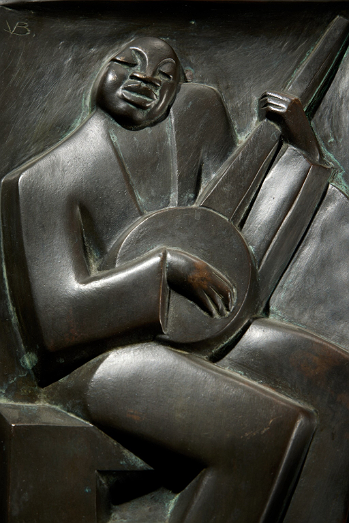 Pair of Art Deco Patinated Bronze Plaque of Jazz Musicians by Béla Vörös Property from an Important New York Collection second plaque dimensions: 12 3/4 x 7 5/8 x 1 1/4 in Signed: initialized VB.France: circa 1927 In 1928, he exhibited at the Salon d'Automne as well as at the Salon des Tuileries and the Salon des Artistes Décorateurs . He worked with the ceramist Édouard Cazaux, providing models of shapes and decorations. During this period he continued to participate in the exhibitions of the Hungarian group UME (New Union of Artists). In 1931, he appeared at the exhibition of Hungarian artists in Paris, published by Bonaparte, and presented African-inspired bronze bracelets and rings at the Colonial Exhibition . The following year, he moved to Nice, where he made a living producing ivory-carved art and decorative objects. They were noticed by the great fashion designer Paul Poiret , who commissioned buttons, umbrella handles, and jewelry from him. He exhibited at the Nice Fine Arts Salon between 1932 and 1936. In 1938, he returned to Paris, where he overcame difficult years, notably losing his wife, the painter Ilona Karikás, deported from Hungary in 1944. In 1945, Vörös moved to Boulogne-Billancourt and worked in his studio in Sèvres . Works by Béla Vörös were presented at the Franco-Hungarian exhibition of the School of Europe in Budapest in 1947 alongside works by Bonnard , Braque , Csaky, Villon , etc. and at the exhibition of the France-Hungary association at the Galerie de Bussy in Paris, whose honorary committee included great names such as Braque, Matisse and Villon. In 1947 and 1948, he participated in the contemporary art exhibition in Boulogne-Billancourt alongside its most illustrious representatives, Léger , Matisse , Picasso , etc.