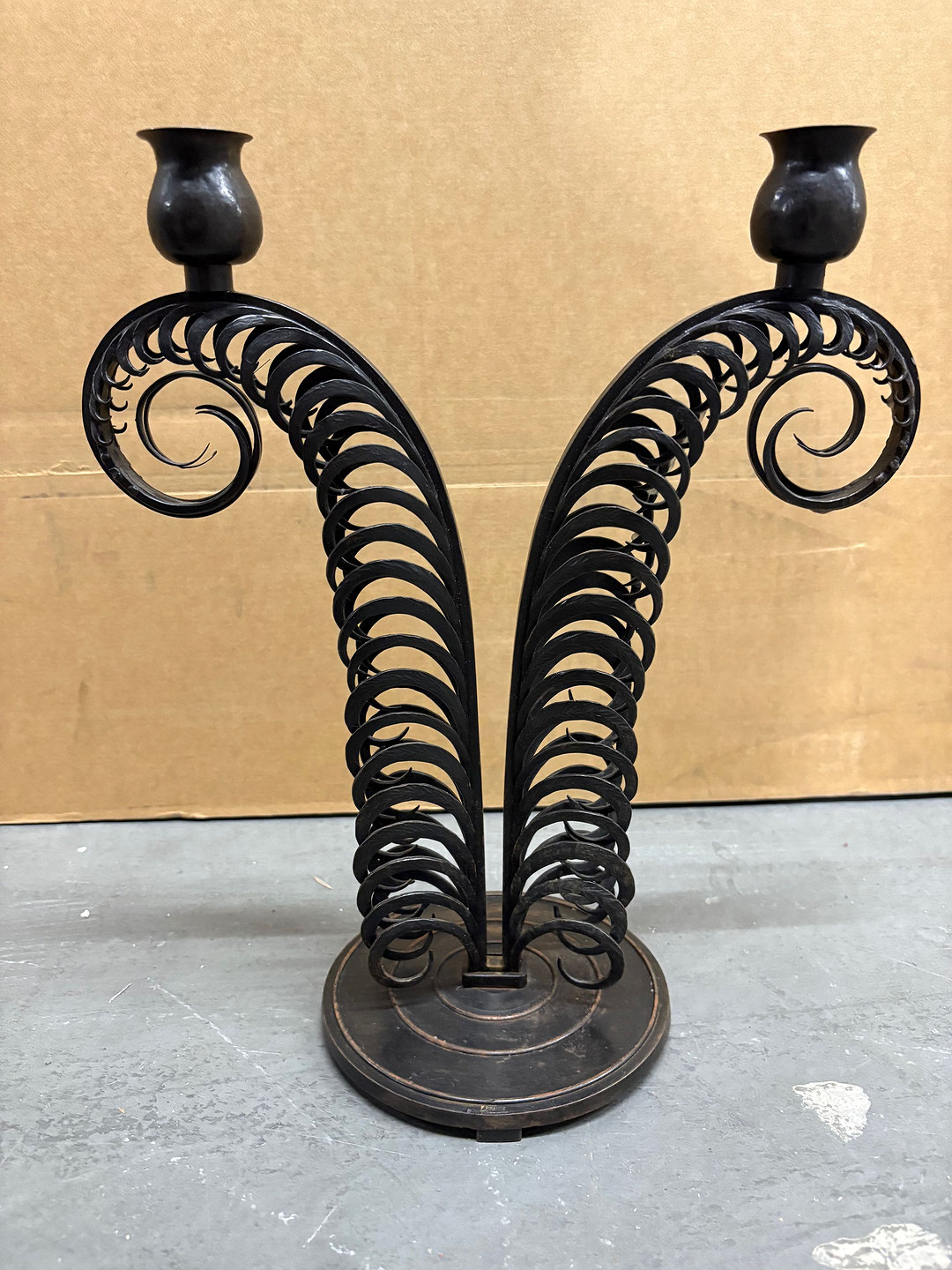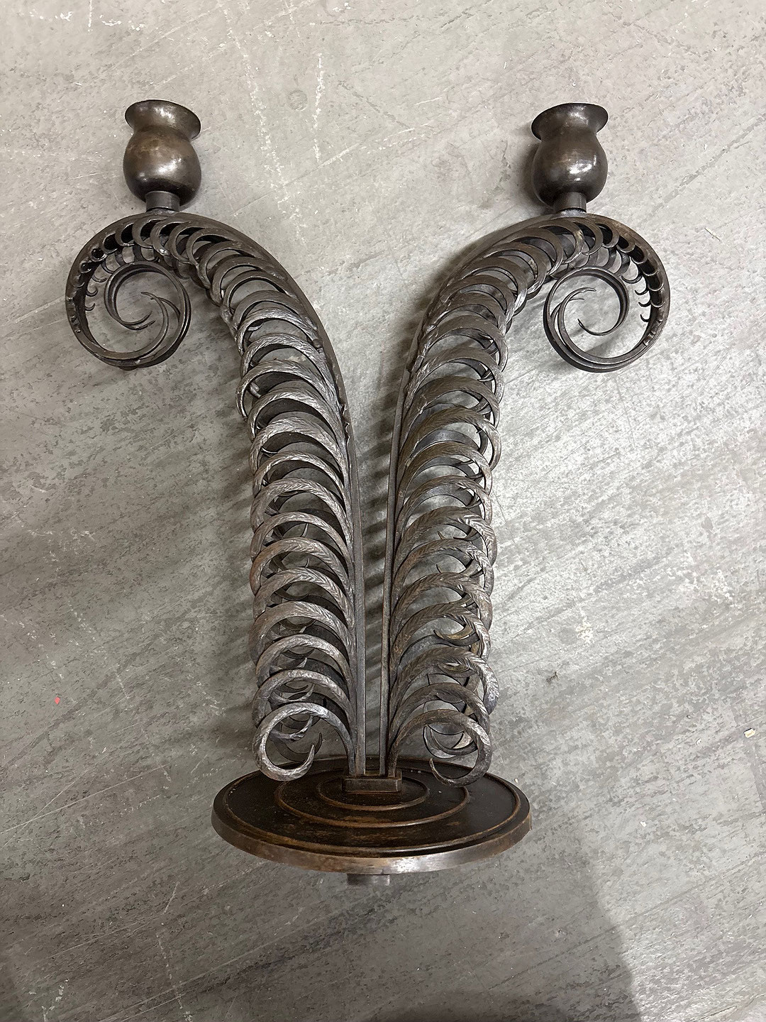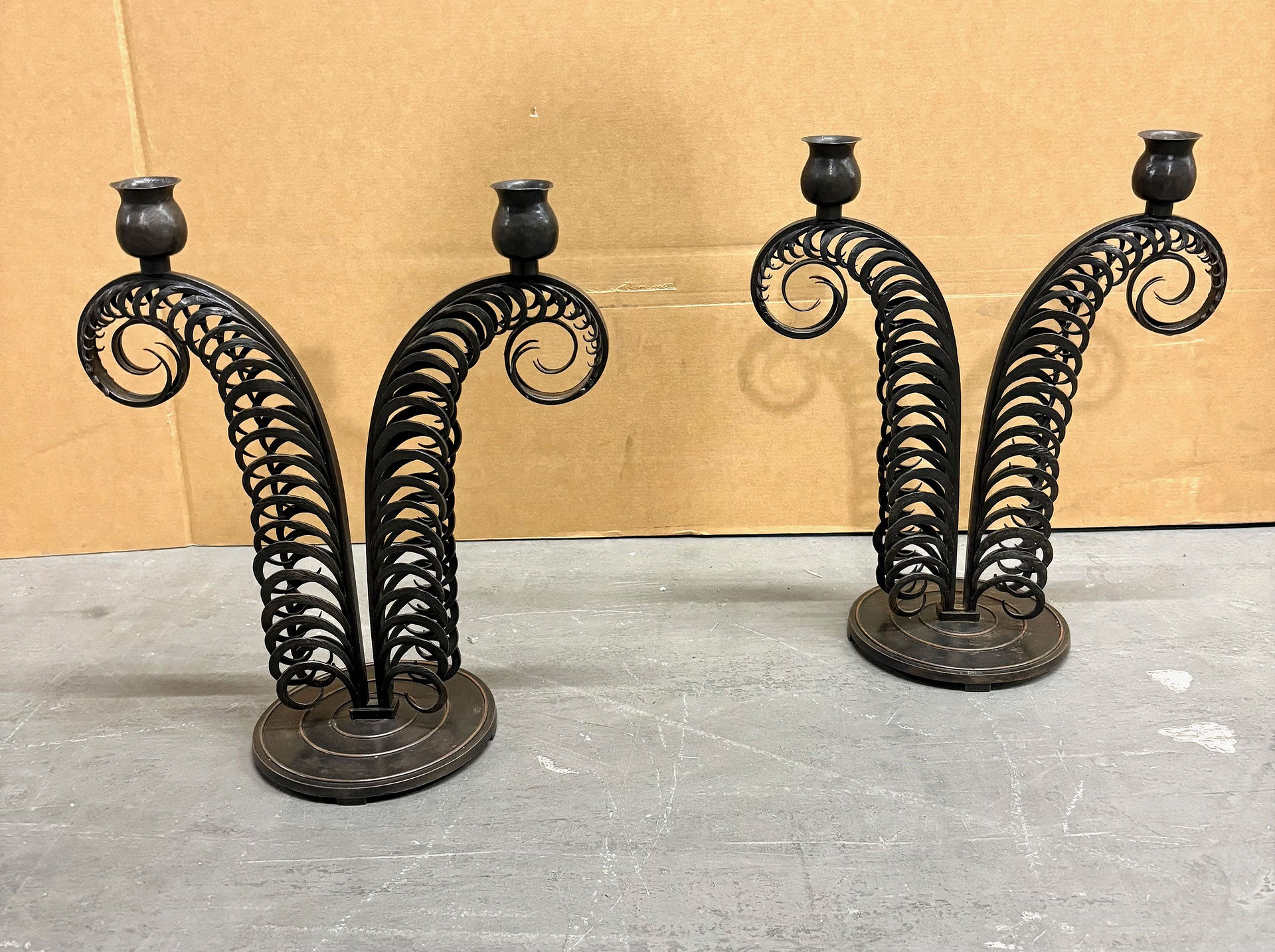 Rare Pair of Wrought Iron Candelabras by Edgar Brandt